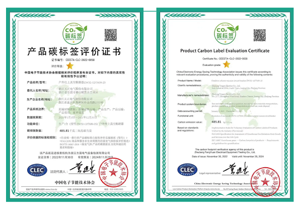 此次碳标签评价表明,ng28南宫国际电气生产的户外柱上真空断路产品,在碳排放大数据方面按国际通行惯例推进,并具备一定的优势,对促进产品全供应链的温室气体减排,达成“双碳”目标具有积极作用。此外,ng28南宫国际还获中国电子节能技术协会颁发的低碳产品供应商证书。
